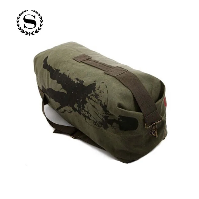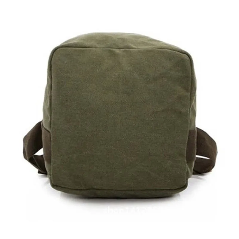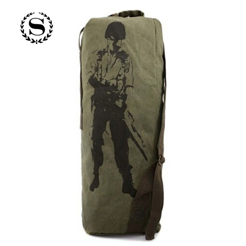 Scione Unisex Drawstring Travel Backpacks Military Multi-function Canvas Shoulder Bags Large Capacity Cylinder Portable Bagpack