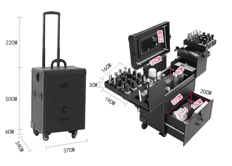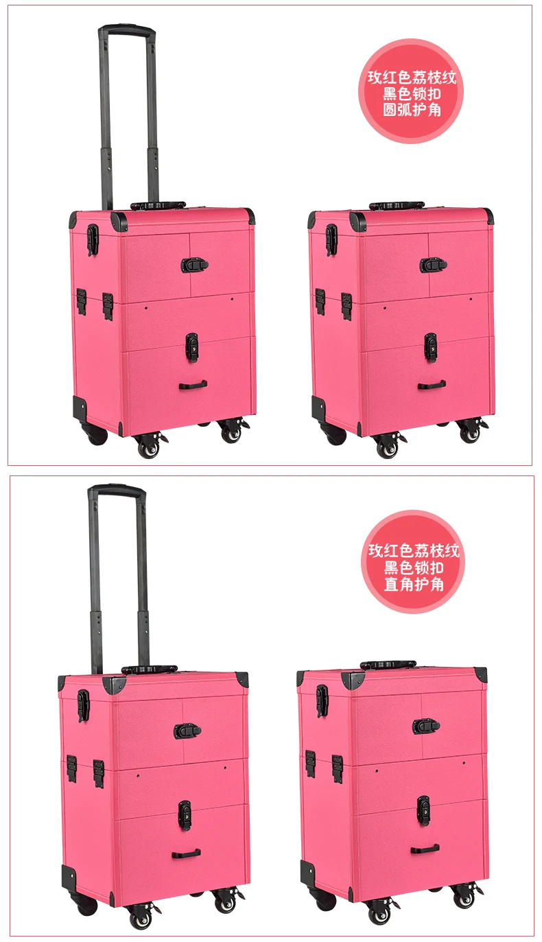Woman Trolley Cosmetic case Nails Makeup Toolbox,Multi-layer Trolley Case ,PVC Beauty Box Travel Rolling Luggage Suitcase wheel